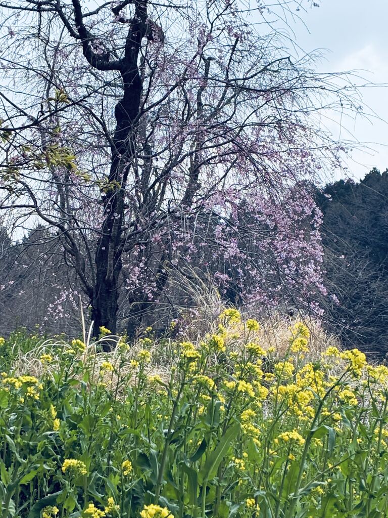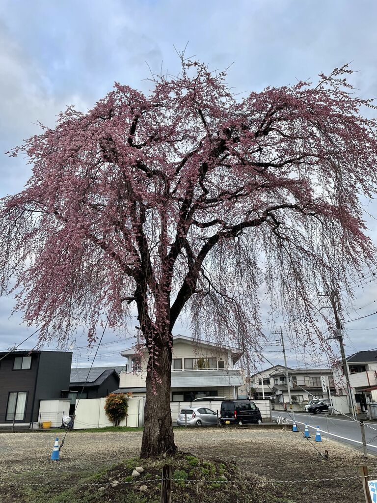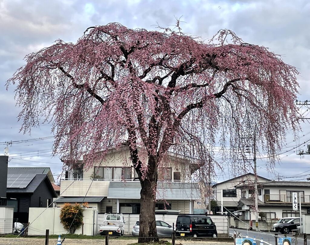 NEW大田原市中央。多目的中央公園の北側。大きな大きな枝垂れ桜が有ります。大田原では経塚稲荷神社の彼岸桜に次いで早く咲きます。濃いピンクで目立つ枝振り。大田原の穴場的桜の名所です。近くには地域の方々が育てている菜の花畑も有りますよ^_^ (訪問:2026/03/28)
