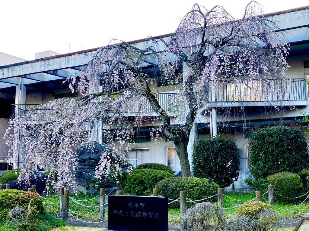 NEW大平図書館に本を借りに来たついでに向かい側にこちらの【大平中央公民館】があるので、毎年恒例の枝垂れ桜をパチリ!夕方で薄暗かったのと近づいて撮れないので、細部まで良く見えませんでしたが、これからが見頃なのかと思います。満開時は、存在感がとてもある桜です。 (訪問:2026/04/02)