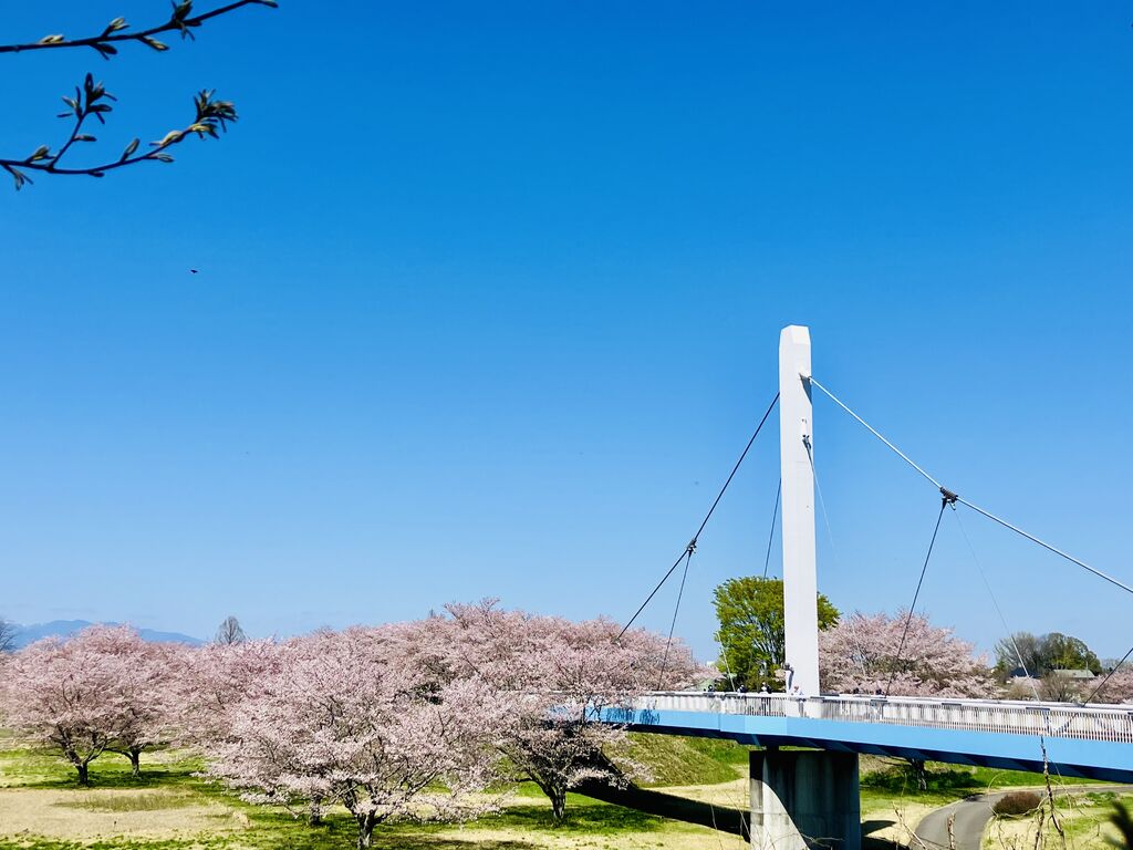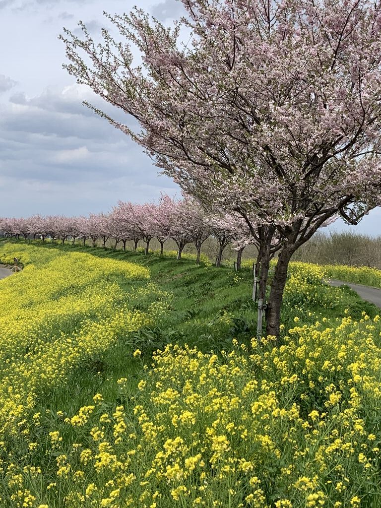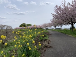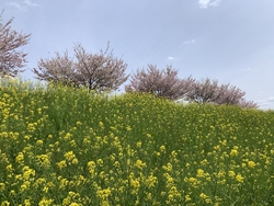 NEW小山市内を南北に流れる“思川“の堤防には各所に“思川桜”が植えられていますが、今回は間々田地区の“網戸(あじと)大橋”へ行ってみました。橋の上下流側の堤防には菜の花も咲いていて、ピンクと黄色の競演が見事です。このような光景は“新間中橋”など他の箇所でも見ることができます。この季節は堤防沿いの散歩やサイクリングが特にオススメです。 (訪問:2026/04/09)