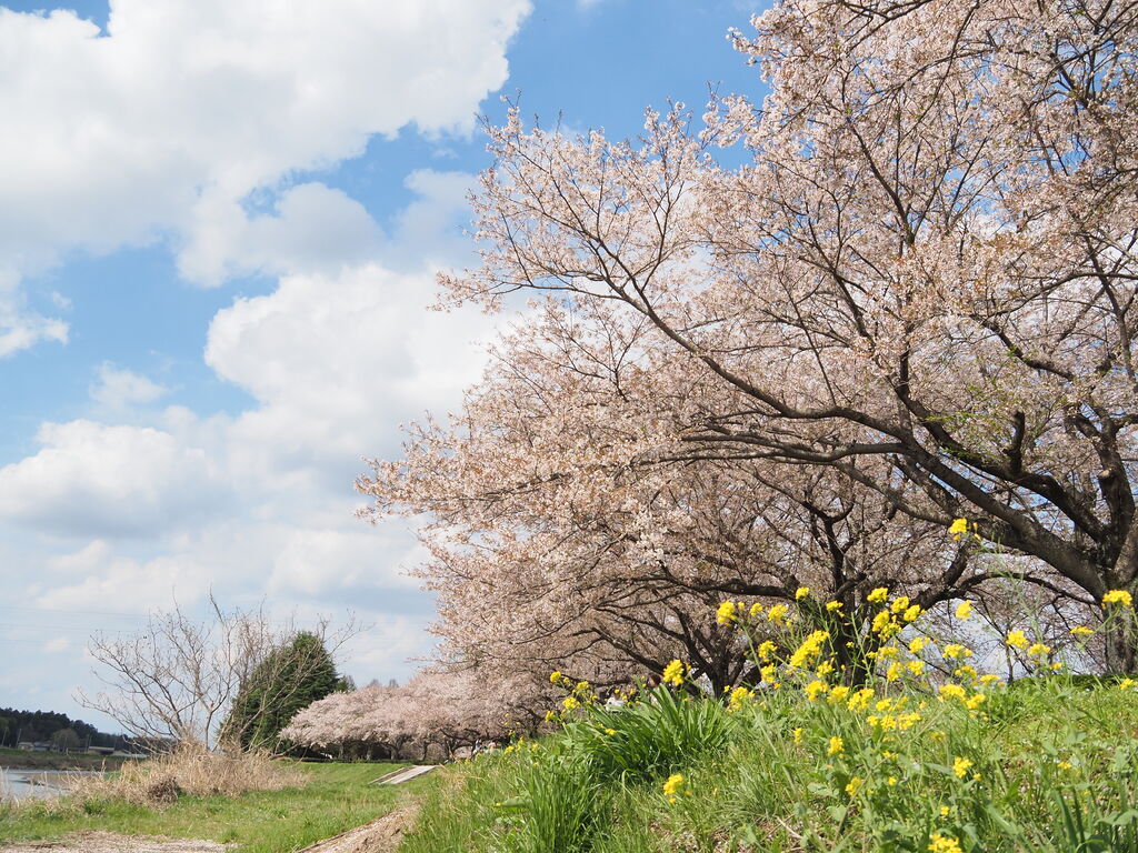 NEW今年は開花から満開になるまでがとても早く、なかなか日程が合わずにいましたが、ソメイヨシノより遅咲きの思川桜には間に合いました。ソメイヨシノよりも濃い目のピンクに花びらも多い思川桜は、とても華やかで可愛らしい!菜の花は終わりかけでしたが、思川桜はきれいに見られて良かったです。クマンバチがたくさん飛んでいますので、苦手な方はご注意を! (訪問:2026/04/11)