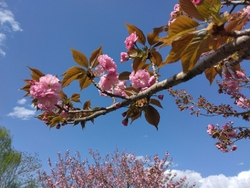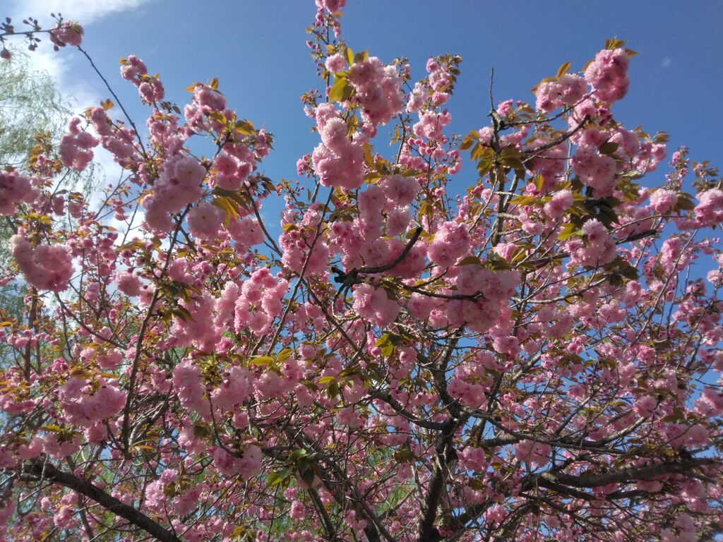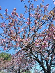 NEW今日は、4月12日(日)です。天気が良く散歩日和で、いつものコースを散歩してきました。ソメイヨシノの桜は散って、今は、八重桜が咲いています。いつものことですが、散歩コースのところどころに八重桜があり、とても気持ち良く散歩ができました。でも、少し暑くなりました。 (訪問:2026/04/12)