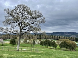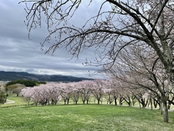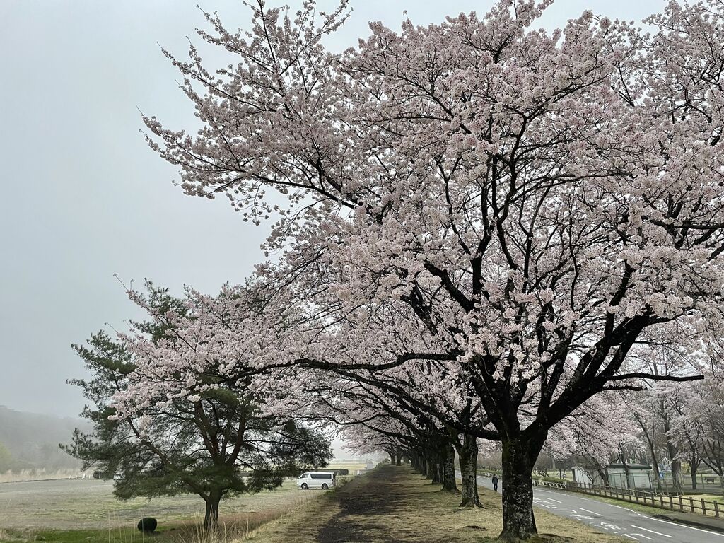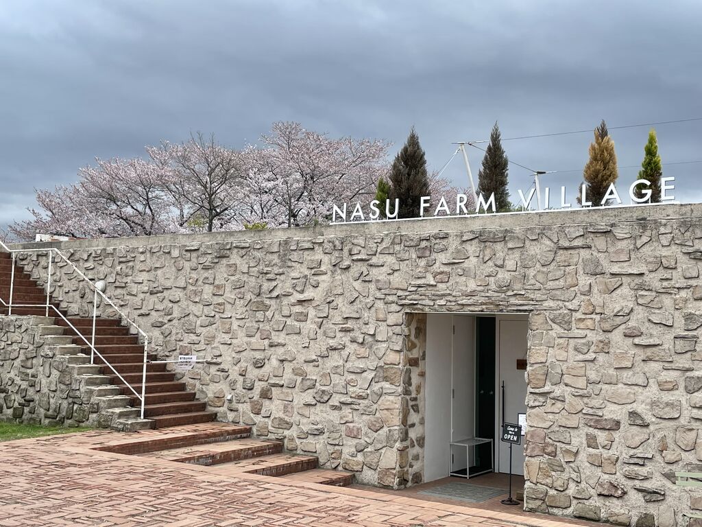 NEWナスファームビレッジの桜が満開で見頃です。レストランから出口に降っていく桜並木を上から見ると、花弁のピンクが牧草の緑に映えて綺麗です。レストラン周辺の何本か立っている桜も美しいですよ^_^ (訪問:2026/04/07)