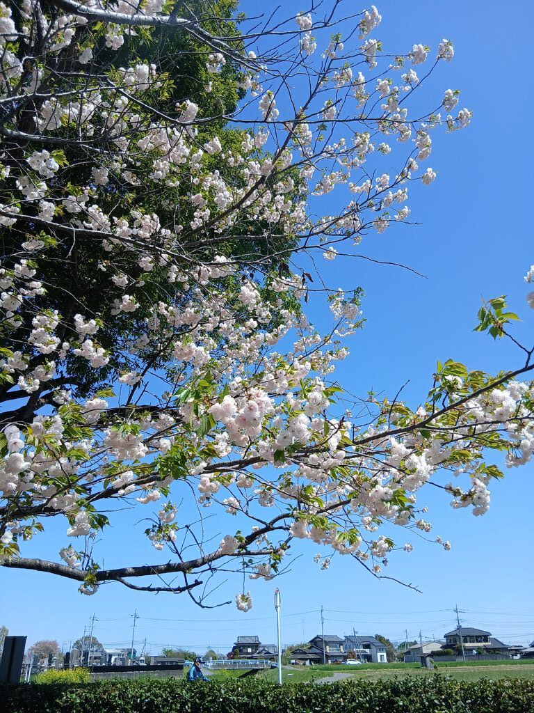NEW八重桜の「サトザクラ」を見に行きました,,ԾㅂԾ,, 快晴の空に、めっちゃ映えていたけれど、少々早かった様子(*Φ皿Φ*) でもやっぱり、可愛いサクラデス(o゜▽゜)o☆ 散策中、白いサクラも発見(@ ̄□ ̄@;)!!! 名前が不明なのが残念なのですが、背が高く、めっちゃキレイ°˖✧◝(⁰▿⁰)◜✧˖° こちらは見頃のようで、最高の美しさでしたヾ(≧▽≦*)o 今日は、スタジアムで、【ヴァンラーレ八戸】のみなさんを招き、サッカーの試合が行われていたようで、音響も響き渡り、とっても賑やかでした☆*: .。. o(≧▽≦)o .。.:*☆ (訪問:2026/04/11)