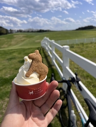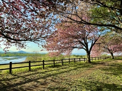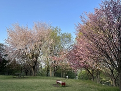 以前から訪れてみたかった NASU FARM VILLAGE。桜がきれいというSNSの投稿を見て、足を運びました。入口から渋滞しており、県外ナンバーの車も多く、人気の高さがうかがえます。小高い丘の上にあるため見晴らしがよく、草原と空が広がる開放的な景色がとても印象的でした。おしゃれな方々が思い思いに景色を楽しんだり、ドリンクやソフトクリームを味わったりと、ゆったりとした時間が流れています。事前予約をすれば、乗馬やトラクターで農場内を散策することもできるようです。桜は散り始めていましたが、風に舞う花びらがとてもきれいで、風情を感じられました。自転車でふらっと立ち寄るにも、ちょうど良い休憩スポットです。まだ訪れたことがない方には、ぜひおすすめしたい場所です。 (訪問:2026/04/11)