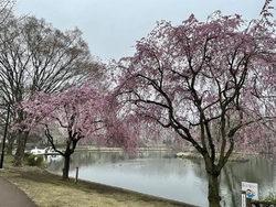 NEW桜が満開です。園内を一周出来るウォーキングコースや川の堤防の並木が美しいです。天気が曇りで残念ですが、晴れて青空であれば、桜の花のピンク色とのコントラストが楽しめた筈。今週末までは楽しめそうです^_^ (訪問:2026/04/07)