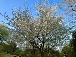 今日は、4月17日(金)の平日です。いつものように散歩に来ました。でも、お目当ては、緑色の花を咲かせるウコン桜です。今年もきれいに咲いていました。そして、いろんな八重桜が咲いているのを見ていると、やはり、出店からのいい匂いにつられて、焼きそば、からあげを買ってしまいました。今年もこうして、いろんな桜が見られて、とても良かったです。 (訪問:2026/04/17)