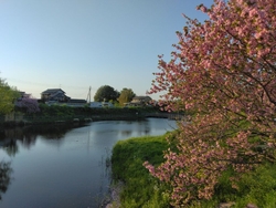 何年ぶりかの花見の訪問。と言いたかったのですが、殆どが葉桜。堤防の桜並木は2本だけソメイヨシノが咲いていました。あとは八重桜も数本。残念。例年であれば、桜生木が満開で、夜桜がそれは綺麗なのですが、、、。又、来春に期待します。河川敷の新緑で我慢をして帰りました^_^ (訪問:2026/04/16)