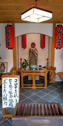 山門のピンクのシダレザクラと赤のカンヒザクラ、本堂前のピンクのシダレザクラと花桃の白とピンクとの鮮やかな組み合わせが協奏曲を奏でているように見えて境内がより一層厚みが増しておりました。300年以上前に造立されたセキ地蔵様も赤頭巾に色とりどりのタスキとサクラに負けず劣らず巧みなコーデをしておられ感心しました。 (訪問:2021/03/25)