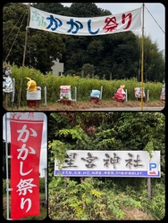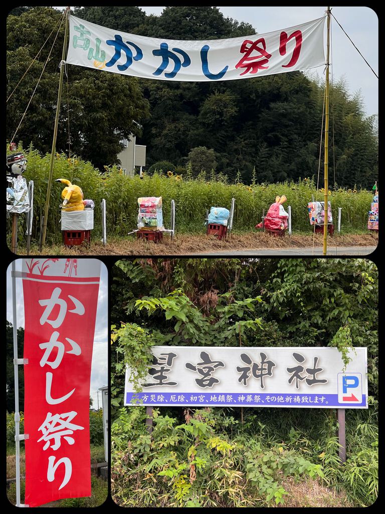 8月参り(* ˊᵕˋㅅ)8月の御朱印は花火とスイカ 神社前には、ひまわりが満開に咲いて、案山子が並んで賑わっていました (訪問:2025/08/25)