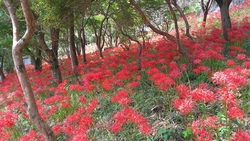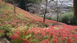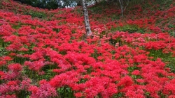 彼岸花を見に行きました。通行規制のため臨時駐車場に車を置いて、歩いても15分くらいだと聞いたのですが、500円で往復シャトルバスに乗りました。乗って正解!すごく急な坂道を登っていくのです!歩いたとしても300円の協力金は支払いますので、乗った方がお得です。彼岸花の方は、今年は咲き始めは遅かったようですがあっという間に見頃は過ぎ、この日は半分は色あせていましたがまだまだ綺麗に咲き誇っている斜面もあり、十分楽しめました。こんなにたくさんの彼岸花は見たことがないと、主人も喜んでくれて良かったです。 (訪問:2025/10/05)