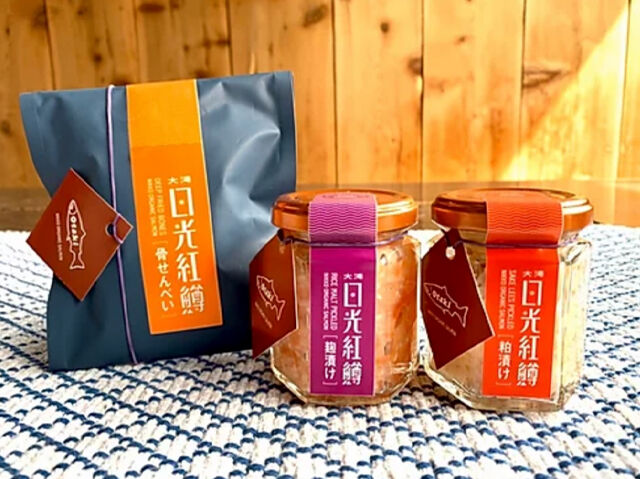 大自然の冷水でギュッと身が締まった日光サーモン。本来はその作り手しか食べることのできないメニューが商品化されました。「丸ごと骨せんべい」はしっとりとした食感がクセになり、ひと口頬張ると手が止まらない!…