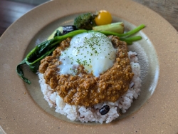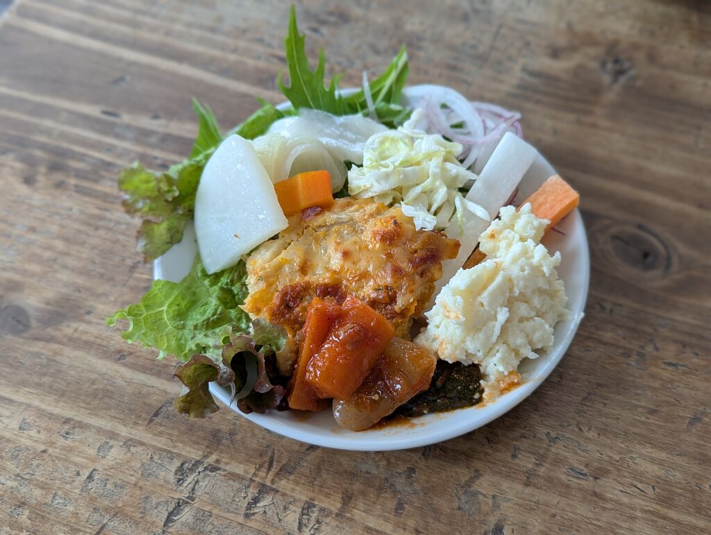 健康的なランチを食べようお邪魔しました。前菜は枝豆のテリーヌ、スープはとうもろこしの冷静ポターシュ。メインは農園野菜のキーマカレー~那須御養卵温玉乗せ~を選択。メニュー表には使用される野菜の生産者さんの名前も明記されてます。サラダバーも種類が豊富で、全てを食べたいと思いましたが、無理でした(笑)ポテトサラダが美味しかったです。セルフの水も3種類あり、自分好みを探して飲み比べしてしまいました。キーマカレーはライスは十五穀米で、これまた健康的。野菜本来の味を生かしたメニューで、野菜ってこんなに美味しいんだと実感させられたランチでした。ごちそうさまでした。
