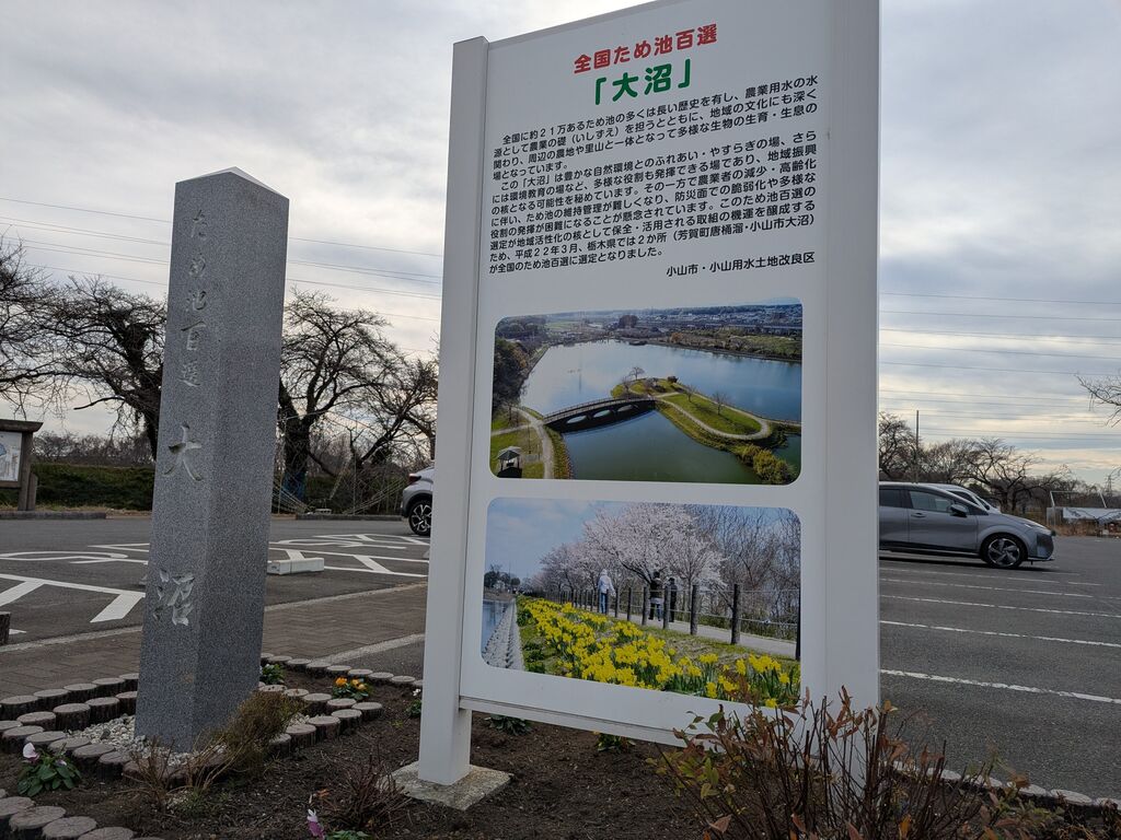 なおさん 宇都宮市 総合レベル89 ファン62 クチコミ 大沼親水公園(大沼ため池) 小山市/公園 84 12 初めて大沼親水公園に訪れました。『ため池百選』にも選定されている農業用のため池で大正時代に築かれたものでした。池の周りには水鳥たちがいて設置してある水鳥の写真と名前を見ながらのバードウォッチングも楽しめます。オオハクチョウも飛来するらしいのですが、今回は残念ながら会えませんでした。駐車場も広くて池の周りを散歩している人も多く見受けられ、私たちもため池をゆっくりと散歩してよい運動になりました。春には桜も楽しめそうなので、次は春に訪れたいと思います。 訪問日:2025.12.11 "ぐッ"ときた! 16人 なおさんのクチコミ一覧に戻る