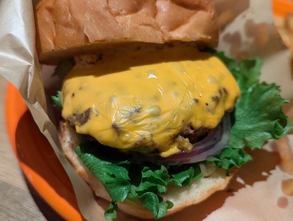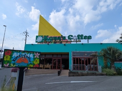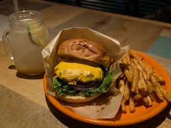 オープンしてから、いつも駐車場に多くの車がありましたので落ち着いてから行こうと思い待っていました(笑)それでも昼時に伺いましたので少し待ちましたが、ハワイアンなグッズも販売しているコーナーもあり、見ている間に呼ばれました。リゾート地にいるような雰囲気の店内は広くてリラックスできる空間でした。【コナズチーズバーガー】と【モチコチキン】飲み物は【クラフトレモネードソーダ】を注文。パティを覆い隠すようなチーズが印象的なチーズバーガーで食べ応えありました。自家製レモネードをソーダで割った爽快感のあるフラフトレモネードソーダもハンバーガーにピッタリです。モチコ・・・もち粉をまぶしてある唐揚げでカリカリで美味しかったです。パンケーキも人気のようで多くのお客さんが注文していました。次回はパンケーキを食べてみたい。