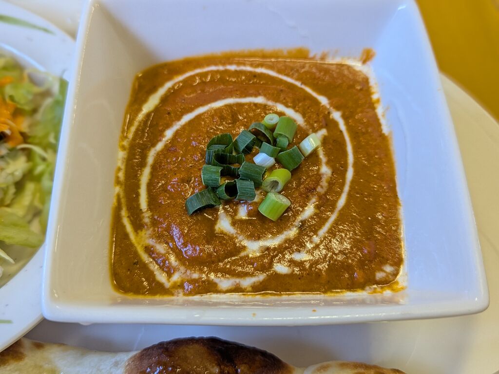カレーが食べたくなりランチ時にお邪魔しました。注文したのは、本日の日替わりで【うずらキーマカレー】1100円。サラダとソフトドリンクが付きます。ナンの大きさにビックリ!今まで食べたナンの中で一番大きいかもしれません。辛さは普通にしたので、それほど辛くもなく私的には食べやすかったです。ナンがほんのり甘いので、刺激を求めるのであれば辛口や大辛を選んだ方が良いかもしれませんね。ナンのお替りは有料(100円)ハーフ(50円)ですが、一枚でお腹いっぱいになりました。店内では海鮮丼も食べられるので、次回は海鮮丼を食べてみたいかな。ごちそうさまでした。