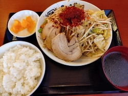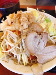こちらのお店の方は初めて行きました。ログハウス風の建物で駐車場もしっかり完備しています。並ぶ前に店内で食券を購入してから並びました。29日は肉の日という事で券売機の所にSNSのフォロー画面を提示するとチャーシュー肉が1枚プラスされると貼ってあったので、ベジ家さんをフォローしてるSNSを見せて分厚いお肉を1枚プラスして頂きました。G系野菜炒めの塩ダレと辛味噌を野菜マシと野菜マシマシで注文。生卵は食べ放題だったので2個頂きました。溶き卵を絡めて食べたりTKGにして食べました。食券を買う時点で野菜の量やニンニク等の有り無しを選べるのでニンニク抜きで注文しました。ボリュームあって食べ切れるか心配でしたが美味しくてペロリと完食しました。でも、さすがにお腹いっぱいになりました。店長さんもスタッフも気さくで笑顔が素敵でした。