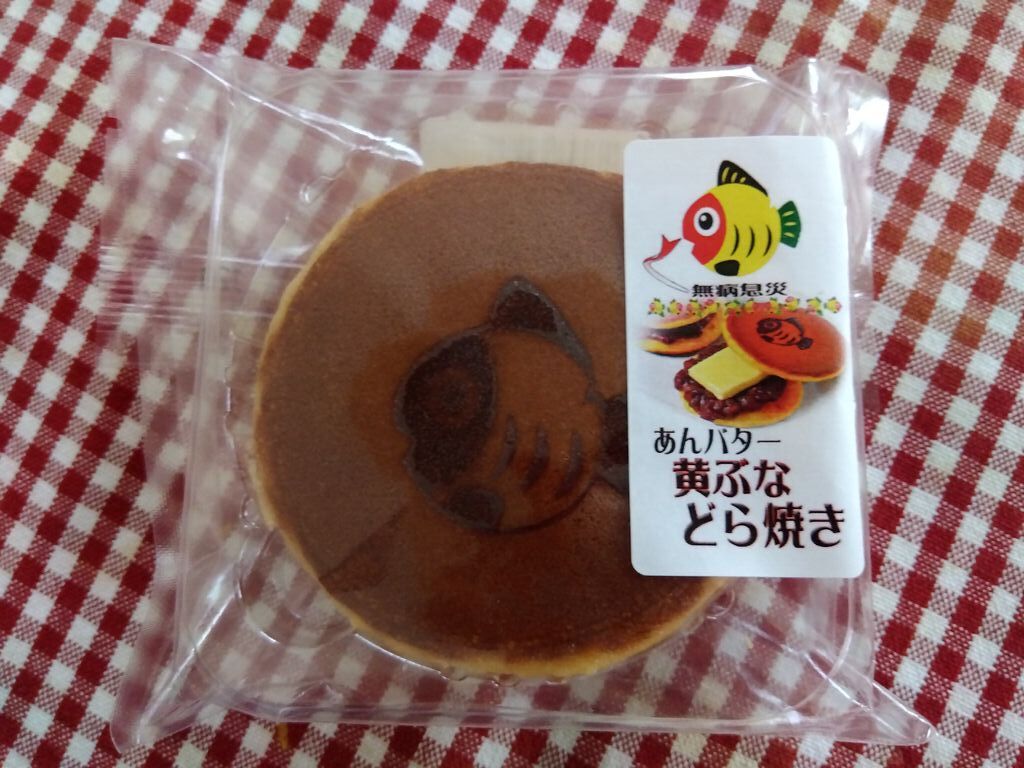 プチおみやにあんバターの「黄ぶなどら焼き」いただきましたぁ(^∇^)ノ☆黄ぶなの焼印がほっこりカワイイ〜( ꈍᴗꈍ)♪もっちりの皮とあんこ&バターの甘じょっぱい感じがたまりませ〜んっ(≧▽≦)♪お口の中でじ〜っくりコラボを楽しんで美味しくいただきましたぁ(^人^)♪