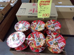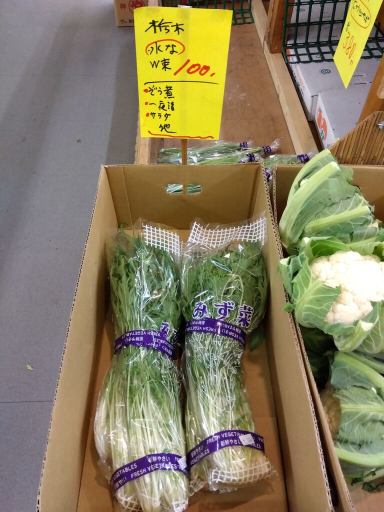 いよいよ今年の営業は明日まで〜☆以前購入したみかんとリンゴがと〜っても美味しかったのでリピ買いに〜と思ったらみかん(S or SSサイズ)は残念ながら売切れ…でもリンゴは無事ゲット〜(^^)vそして久しぶりのW束のお野菜がいろいろ〜☆水菜、ニラ、小松菜のW束もゲット〜♪一袋た〜んと入って¥180の赤ピーマンも購入できました。そうそう大盛りの美味しそうなカップ麺も¥100でお得でしたぁ(≧▽≦)♪今年はこれでお買い物締めです。また来年(1/5〜)楽しみにおじゃましま〜す( ꈍᴗꈍ)♪