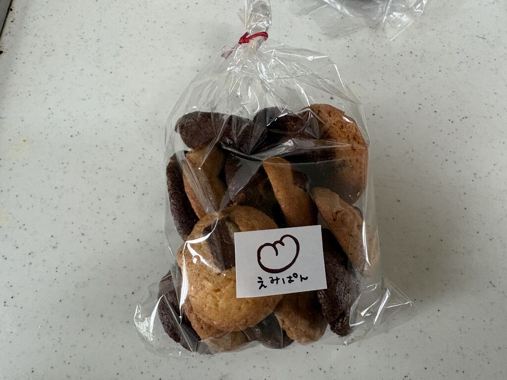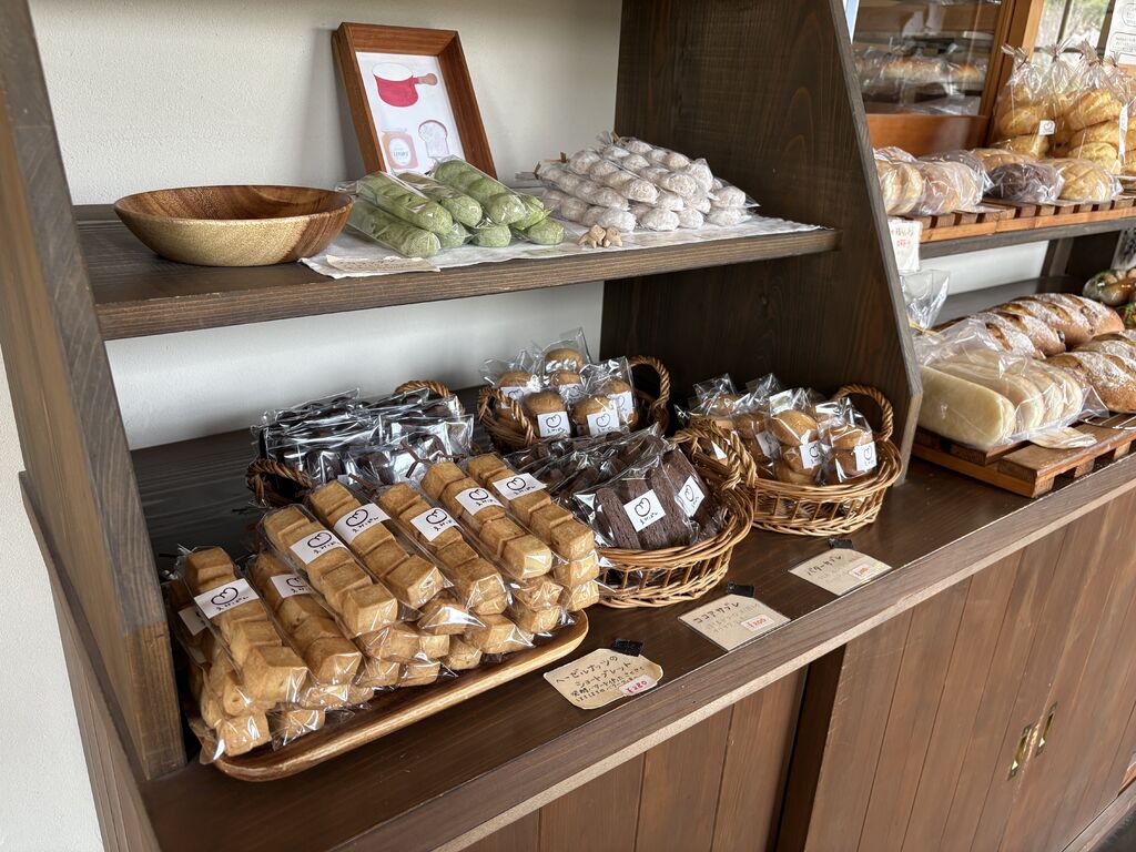 益子に来ると買いに来るパン屋さんです。小さなパン屋さんですがお菓子も売ってます。ふわふわコッペパンが一番好きです。今の季節のジャムはいちごとブルーベリーとのこと。いちごジャムのコッペパンを買ったのですが写真撮らずに食べてしまいましたので悪しからず。そして家族用にメロンパンとくるみのパンを買いました。レジ手前にあったクッキーも買いました。サクッとした甘いクッキーです。愛犬にもかわいい形のクッキーをかいました。店内にあった手洗い用の水道にかわいいコッペパンの飾りがついていました。
