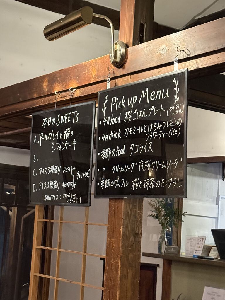 cafe Marioさん、昭和元年に建てられた古民家で、気づけばもう100年の歴史。柱や梁に時代の趣が感じられ、とても落ち着く空間です。店員さんが丁寧にメニューを説明してくださり、QRコードからオーダーするスタイルでした(*^_^*)ディナータイムにもセットメニューがあり、黒板には「月替わりメニュー」や「本日のスイーツ」も案内されています。今回は「アールグレイと桜のシフォンケーキ」と、自家製ジンジャーシロップを使ったカクテル「手加減しないシャンディガフ」をいただきました。どちらもとても美味しかったです♪ライトダウンされた夜の店内で、ゆっくりとした時間を過ごすことができました。また訪れたい素敵なお店です♥
