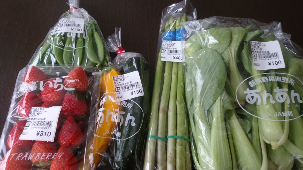 土曜日にmorijiripanさんのパンが販売されていることを知り、午前中のうちに行きました。自家製餡の【バゲットのあんバタ(400円税込)】【ホットサンド(400円税込)】を購入しました。morijiripanさんのバゲットは歯切れが良く中は柔らかいので大好きです。自家製餡の優しい甘さはきび糖が理由のようです。足利産の野菜や苺も購入しました。トマトはサンロードという種類で、いつも買っているあしかが美人ブランドの麗容より柔らかいと感じました。現在、「食べて応援あしかが美人」というキャンペーンを行っています。2000円以上のレシートで応募出来ます。その場で記入して応募して来ました。