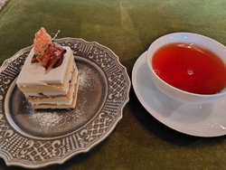 ずっと行きたいと思っていました。数年前は満席で断念し、その後お休みに入っていたためようやく行くことができました。その日にあるスイーツを実際に見せてくれてどのように盛り付けるかの説明をしてくださいます。【和栗のショートケーキ(700円税込)】【ディンプラFBOP(500円税込)】にしました。紅茶の香りで優雅な気持ちになり、和栗のショートケーキの美味しさに癒されます。店主さんが常連さんとモンブランの話をしていて、年によっては和栗がモンブランとして提供されるのだと分かり来年も来なければと思いました。季節によってスイーツが違うので来年というより近々行きたいです。