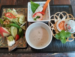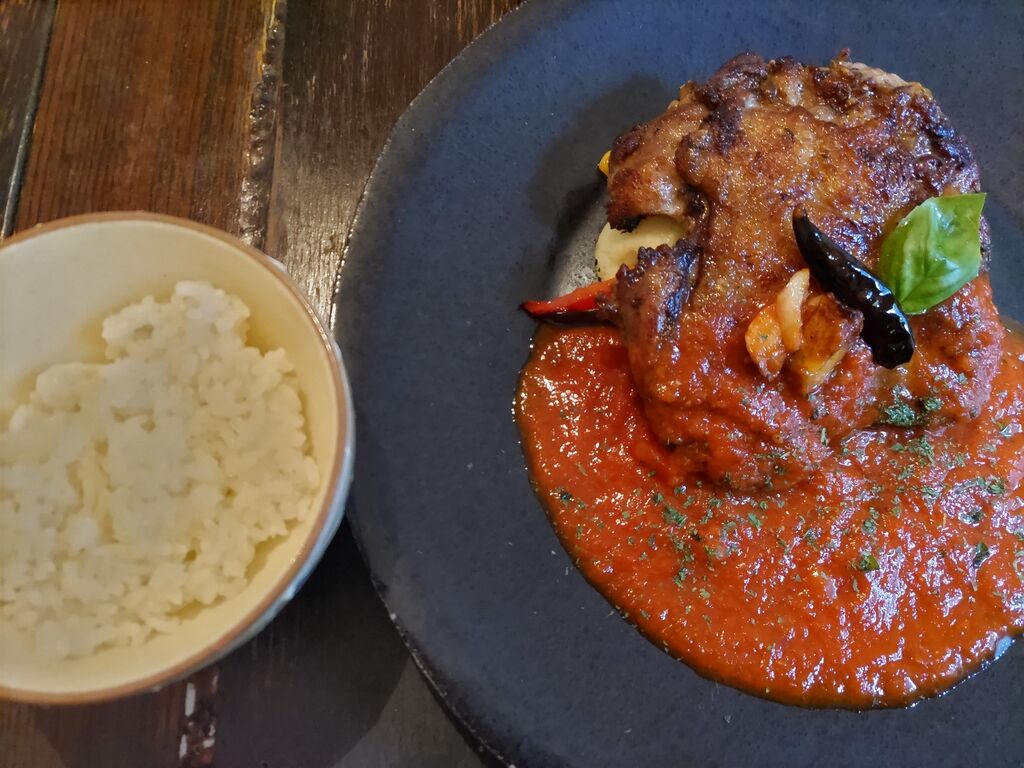 以前平日に伺ったところ『予約で満席』という案内が掲示されていたため、予約をして友人とランチをしました。この日も『予約で満席』でしたが、個室のような席が用意されていました。友人は【牡蠣とほうれん草のリゾット(1400円税込)】を【Aセット(500円税込)】で、私は【若鶏のパリパリ焼きトマトソース(1300円税込)】を【Aセット(500円税込)】にしました。Aセットのサラダも小鉢、スープだけでも野菜や魚介類が食べられて嬉しいです。若鶏のパリパリ焼きはソースがたっぷりかかっているのにパリパリで美味しいです。贅沢なランチになりました。トイレもハロウィン仕様で可愛いらしかったです。