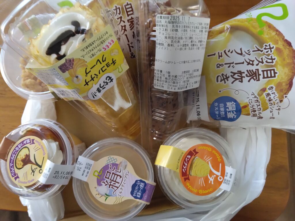 近くまで行ったのでこれは寄るしかない!と行ってきました。いつものごとく800円の詰め合わせの中味を吟味。だいたいシュークリーム2つ、クレープ2つ、プリン4つ入っていました。ちょーっとずつ違うんですよね。この日はキャラメル味が多い袋もありました。バラでも売っているので、家族で喧嘩になりそうならバラを購入するのも手です!これから寒くなってきますが、あらかじめ保冷バッグを用意していくといいですね。年中無休もありがたいです。