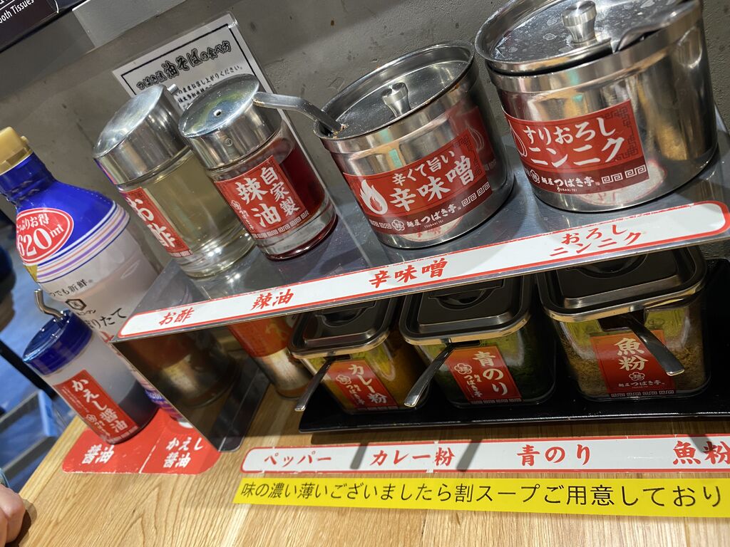 初めて2人でランチ訪問しました。券売機で太旨ラーメン880円を、並盛り、味薄めで。トレイを持って並ぶと麺が出来て、ネギは盛り放題、卵、漬物を取ってテーブル席に。ライスはどうすれば貰えるのか聞くと最初はライスは、券売機で購入との事。150円払って再び並びお茶碗を頂き、ライスも無事確保出来ました。お茶碗貰える場所は麺の所で、その場所には、次回は代金がかからないライスの無料券が置いて有るので一枚頂きました。ライスの無料券には有効期限が有ります。慣れないのですが食べるまでに、ちょっと時間がかかりましたが、麺は極太で幅も1センチ以上あったりする縮れでスープの絡みも良く啜るより噛み締める美味しい麺でした。ご飯に卵をかけ、ニンニクなどスパイスが沢山有るので、色々試しながら味変も楽しみました。清潔感に溢れスタッフの皆さん凄く感じが良く居心地も良かったです。初めてで戸惑いながらのランチになりましたが、また行きたくなるお店でした。