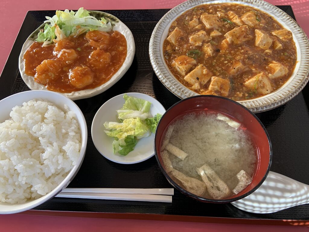 土曜日の昼どきに初訪問。「お得ランチ(1280円:税別)」を注文しました。メイン料理は18種類の中から2品を選ぶことができて、これに、ご飯・味噌汁・漬物が付きます。今回はエビチリと麻婆豆腐を選びました。甘酸っぱいエビチリと旨辛い麻婆豆腐の組み合わせで、ご飯がぐんぐん進みました。食後は満腹・満足のランチタイムとなりました。18種類の中には杏仁豆腐・マンゴープリンなどもあります。食後のデザートをいただきたい方には、2品のうちの1品を、これらから選んでみるのもアリですね。私も次回はそうするつもりです。