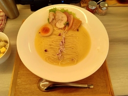 この前の土曜日の午後行ったら、駐車場がいっぱいでしたので、今日の午後行って来ました。カウンターに座って、テーブルの画面タッチで注文しました塩白湯麺が平日ランチタイムは大盛無料なので、それと鶏とゴボウの炊き込みごはんをオーダーしました最初に麺のスープを飲んでみましたがとてもおいしかった。麺を大盛にしましたが、最初そんなに多いようには見えなかったのですが、結構量が多かったですが、おいしかったのでスープも全部たいらげました。鶏とゴボウの炊き込みご飯もおいしかったので、あっと言う間に食べてしまいました。お酒のおつまみが豊富なので、今度はお酒を飲みに来たいと思います楽しみです✨