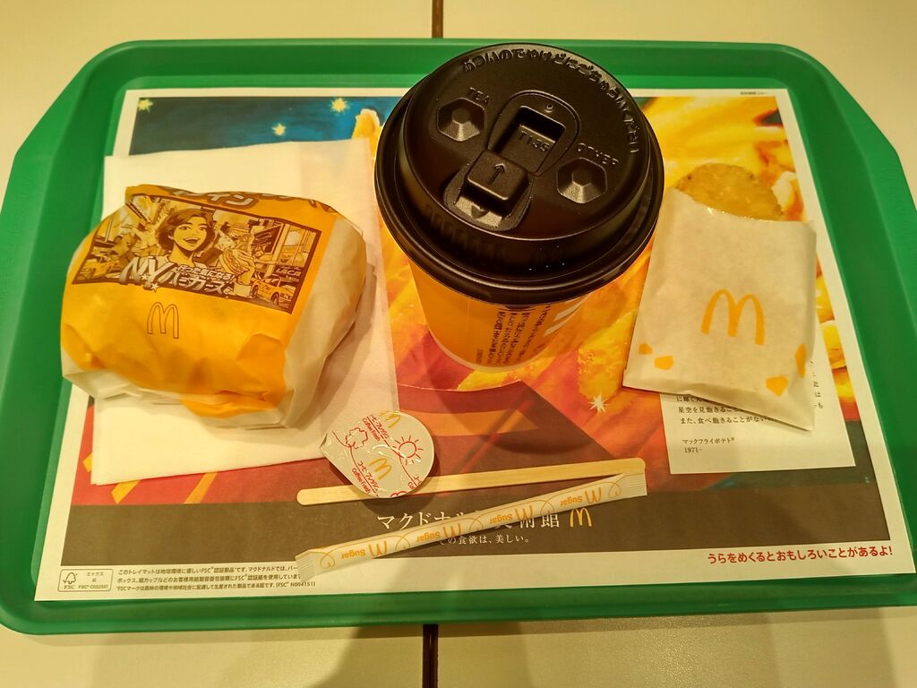 テレビのCMで何回も見ているので、食べたくなって来店しました。アプリのクーポンから、NYソーセージペッパー&ビーフソテーマフィンの朝マックセットを頼みましたパンにはさまっているソーセージにはおいしい辛味があって食欲がすすみました。マヨネーズが良いアクセントになっていると思いますもちろんレタスのシャキシャキ感はとても良いです✨ハッシュポテトの味はとても良かったです。プレミアムローストコーヒーをのみながら、ゆっくりと今日1日の予定を考えました。今日も良い1日になりそうな予感がしますまた来る時がとても楽しみです。