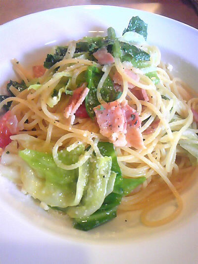 インターパークの喧騒からは離れて、静かに食事が出来ました。ランチは1100円がベースで追加料金(100~300円)をすると、オーガニックパスタ・自家製生パスタ・クリーム系パスタ・お食事・ドリンク・デザートなどを希望でチョイスしていきます。そのまま1100円ですと、ワンプレートに前菜・ミニスープと選べるパスタ・ドリンクでした。この日は塩味のパスタを選びましたが、ニンニクが利いて美味しかったですよ。次回はトマト系を選んでみたいです。週末でもランチをやっているので、インターパークへ行く前に立ち寄り易いお店だと思います。