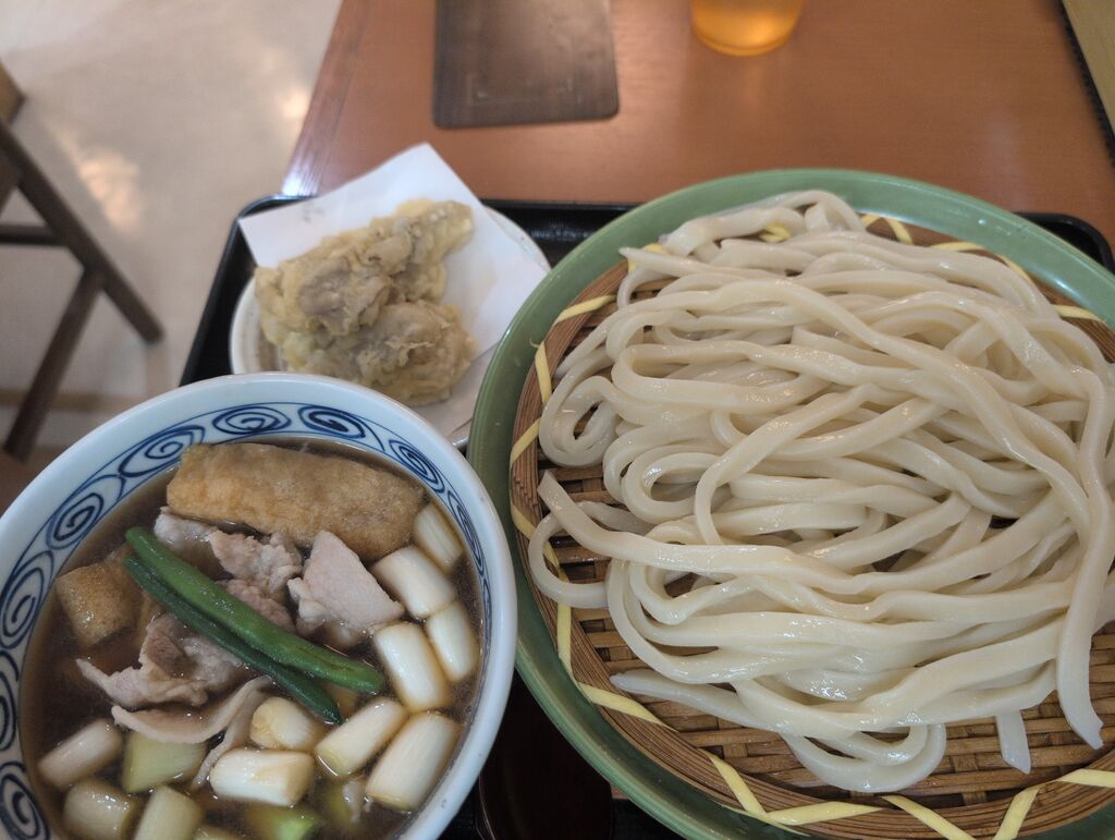季節限定の舞茸天付き肉汁うどんを食べに来ました。いつもは開店後すぐ来るのですが今日は12時半前になってしまったら店内いっぱい、入店待ちでした。サラリーマンの方々が多いですが、私と同じお一人様女子もいらっしゃいます。おつゆ熱いで〜すと着丼。ネギ、油揚げ、豚肉の入った汁はたっぷり。大きな舞茸天はそのまま食べて半分は汁につけて食べました。天ぷらですが汁があっさりしてるので油っこくなることなく美味しく頂きました。次の季節限定は寒くなってきたのでとろみのあるものが希望です。