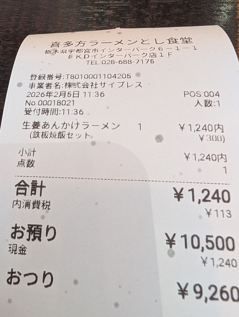 三つ編み娘さん 宇都宮市 総合レベル74 ファン9 クチコミ 喜多方ラーメン とし食堂 FKDインターパーク店 宇都宮市/ラーメン 64 2 立て看板の生姜あんかけラーメンと鉄板焼飯のセットにしました。生姜はみじん切りでガリッと存在感あり。酸っぱさもあり美味しい。太めのちぢれ麺が合います。猫舌なのにあんかけと鉄板焼飯どちらもアツアツを頼んでしまいましたが、どちらも美味しいうちに頂きました。 訪問日:2026.02.05 "ぐッ"ときた! 12人 三つ編み娘さんのクチコミ一覧に戻る