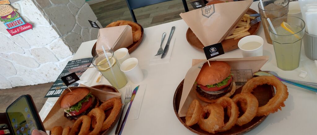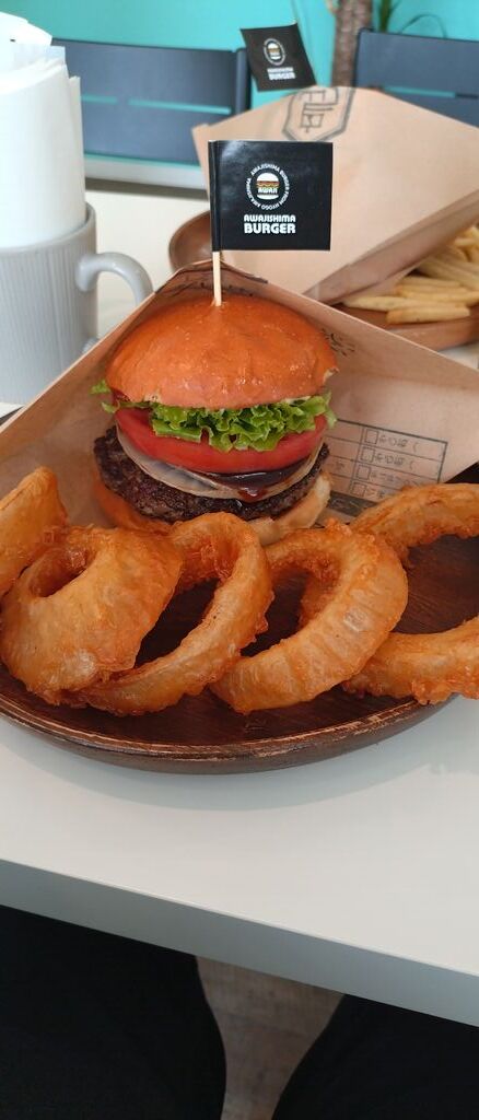 友人と訪問しました。 淡路島バーガーとはなんだろう?と思って何も調べずに行ったら、玉ねぎだったんですね〜!バーガーにぶ厚めの玉ねぎが挟まってます。サイドもポテトではなくオニオンリングを注文しました。食べ応えが十分にあり、男性でもお腹は満たされると思います。日曜だったこともあり、店内は満席。次から次へとお客さんが来ました。自治医大店というのでチェーン店かと思いますが、クオリティは高く良いお店だと思います。ファストフードのハンバーガーと比較すると値段はお高めですが、行く価値はあると思います。