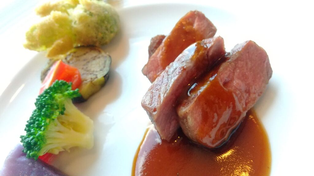 夫婦でランチに行ってきました。ホテル最上階からの風景を楽しみながら、高級感溢れる食事はとても楽しかったです。コース料理は前菜から最後のデザートまで、どの料理も美味しく見た目も美しかったです。中でも特に気に入ったのが、海苔のソースのかかった真鯛のソテーです。磯の香りが香しく、厚みのある真鯛はふっくらと調理されていて旨味が閉じ込められていました。その後は肉料理、デザート、珈琲をいただいて大満足なランチとなりました。ホテルスタッフの対応も丁寧で品があり心地良い空間でした。