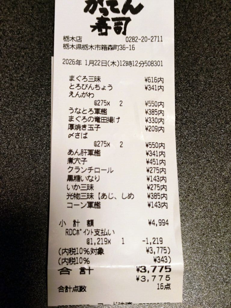 波のりのりさん 栃木市 総合レベル32 ファン7 クチコミ がってん寿司 栃木店 栃木市/寿司 71 13 平日時間があったので、家族でお寿司食べたいね〜からのこちらへ。まずは、いつもの まぐろ三昧を注文。変わらず美味しかった。あと。いつもみなそれぞれ同じものを注文しているなか、たまに違うものを食べよう!で、私は、クランチロールを注文。エビフライ(エビ天??)を海苔、大葉、酢飯で巻き、サクサク衣。(やや相違ありか、すみません)そこに甘いタレがかかっていて 美味しかった。まだまだ食べてない美味しい品がありそうです。次も新たに発見しに行きます! 訪問日:2026.01.22 "ぐッ"ときた! 12人 波のりのりさんのクチコミ一覧に戻る