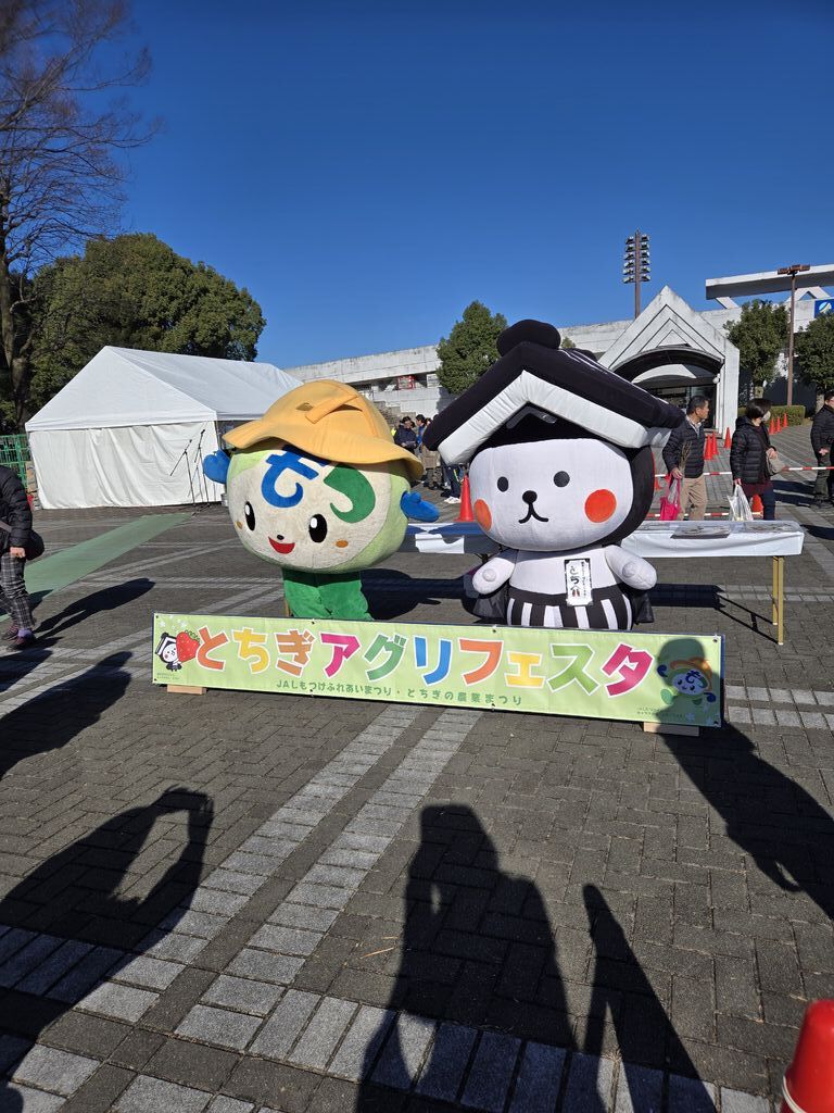 アグリフェスタに行ってきました。JAしもつけの農業祭です。野菜の販売や出店がたくさん出ていました。大根2本で100円、ごぼうが2.5キロで1200円のブースやお買い上げ抽選会が長蛇の列になっていました。とても穏やかな天気だったので、噴水やテーブル席でゆっくりとみなさん食べられていました。ゆるキャラも登場し、子供のじゃんけん大会も賑わっていました。公園内は、ジョギングをしてる人や子供の野球の試合、遊具で遊ぶ子供たちもいて、イベントではない日も来てみたいと思いました。