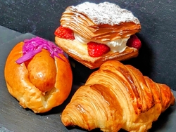 久しぶりに『pain récit』さんのパンが食べたくて訪問しました(^o^)v。。。福島の会津南郷村より移築された曲家の古民家を利用した店舗は素敵です(*´∀`)♪。。。今日は 【クロワッサン¥280】【ソシソン¥380】【ミルフィーユデニッシュ¥600】を購入しました(*^^*)。。。「クロワッサン」は、バターが香るサックサク生地でクロワッサン好きには堪りません♡「ソシソン」は、フランス語でソーセージのことらしいです。プッチッとした歯応えのジュ~シ~ィなソーセージ!ッが紫キャベツ・マスタードと共に弾力の有る生地のパンに挟まれて満足感が有るパンです「ミルフィーユデニッシュ」は、 サクッとしたミルフィーユ状のパイ生地に生クリームとカスタードのWクリームと爽やかなイチゴが挟まれ、共に入るラズベリーシャムとの相性は最高で、食事でもデザートでも楽しめる逸品です(*´ω`*)。。。まだまだ♡美味しそうなパンが沢山有りました。次は何を買おうかなぁヽ(*´▽)ノ♪。。。素敵な古民家のお店と美味しいパンの揃うお洒落な『pain récit』さん!!! お勧めですよ~ぅ( ^-^)ノ∠※。.:*:・'°☆