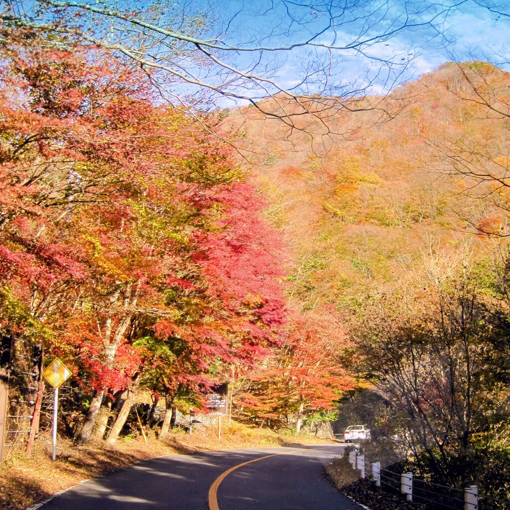 久しぶりにこちらへ紅葉見物に伺いました(*^^*)。。。前回はまだ料金所が有った無料化前だったので5年以上ぶりのお久しぶりの“日塩もみじライン”です(^-^)ゝ゛。。。この道路は標高差が有る高原道路なので、紅葉が楽しめる樹木はモミジやカエデだけでなくブナ、ナラ、カラマツ等と色とりどりの鮮やかで多様な紅葉を楽しめるので大好きな道路なんです♪ヽ(´▽`)/。。。また、不思議と道路と周囲の自然との一体感が感じられる所も良いんですねぇ(*´∀`)♪。。。蛇足ですが、ここは栃木県内に4つ有る頭文字Dの聖地(コース)の一つでも有り、危ない走りはしていませんでしたが 今日もそれらしい車を数台見かけました(^o^)/。。。日塩もみじラインは、道路建設時にもみじ等が植樹さたので、人為的な樹木と豊かな自然林が融合した紅葉が楽しめるのが道路の愛称の由来になっています(^○^)。。。それだけに紅葉の景色は素晴らしく“いろは坂”ほど観光の方も訪れないのでユッタリと景色や紅葉を見て走れるのが魅力です(*´ω`*)。。。走行時には道路脇の落ち葉の下などに蓋の無い深い側溝が有るので御注意下さいねぇ(^-^)ゝ゛。。。ユッタリと景色を楽しめながら走れる『県道19号(日塩もみじライン)』!特に紅葉の季節はお勧めのドライブコースです( ^-^)ノ∠※。.:*:・'°☆