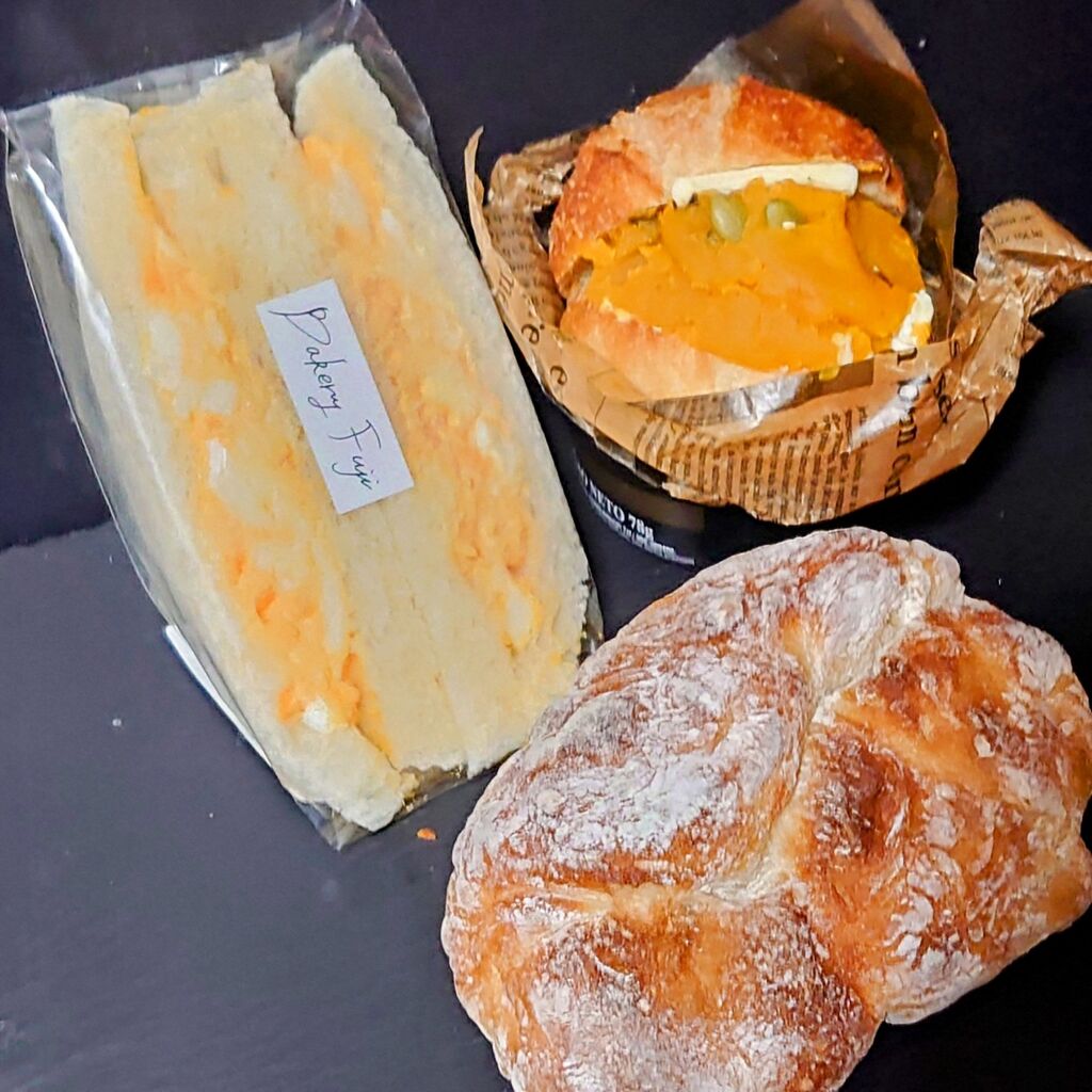 栃木市へ来た時にお店が定休日でなければまずない伺う『ベーカリーFuji』さんです(*^^*)。。。今日も定番【たまごサンド¥260】【カボチャ餡とクリチ¥216】【国産小麦のリュステルック¥120】を購入しました(^o^)/♪ヽ(´▽`)/(*´∀`)♪。。。「たまごサンド」は言うまでもなくタップリのたまごサラダが入るお気にの逸品「カボチャ餡とクリチ」は季節限定商品で、甘いカボチャ餡とクリームチーズの塩味がコラボーレショーンが秀悦な逸品「国産小麦のリュステリック」は、素朴な形のパンです。吸水多めでモチモチ生地の風味が強く、外はパリッと中はしっとりとした食感で旨々です(*´ω`*)。。。グランドメニューの他に季節ごとに販売されるメニュー、新作メニューと色々な美味しいパンとの出合いが楽しい『ベーカリーFuji』さん!お勧めのベーカリーです( ^-^)ノ∠※。.:*:・'°☆