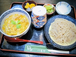 以前にこちらで“カツ丼”を頂いた時に気になっていた【親子丼セット¥1580】を“冷たいそば”で頂きました♪ヽ(´▽`)/。。。スッキリした蕎麦つゆに細く固めに茹でられたツルツル蕎麦は喉ごし良く頂けます(*´∀`)♪。。。親子丼は、トロットロのたまごと程好い歯応えの鶏肉、つゆをタップリと含んだご飯で箸が止まらない旨さです(*´ω`*)。。。よく見かけるセット物だと丼か蕎麦のどちらかの量が少ないのですが、丼も蕎麦も大きくボリューミーで食べ応えがあり大きくは有りませんがサラダとデザートまで付ます(^o^)v。。。セット物には他にカツ丼、かき揚天丼、海老いか天丼等があり各々の丼、勿論!美味しいお蕎麦やうどんも有りましすよゥ(^o^)/。。。カツ丼だけじゃ無い!他の美味しい丼物や蕎麦・うどんの『そば工房 つちや』さん!お勧めのお蕎麦屋さんです( ^-^)ノ∠※。.:*:・'°☆