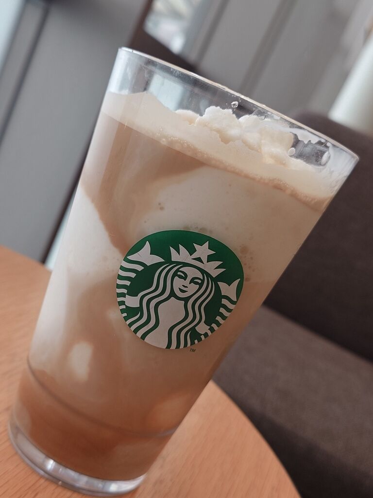今日は病院の日!診察〜会計まで終わり、隣地の薬局までネットで処方箋を送信しました(^o^)v。。。薬の用意が出来るまで『STARBUCKS 済生会宇都宮病院店』で一休憩です(^o^)/。。。自分の好きな物の中に“エスプレッソ”と“アフォガード”が有るんですが…スタバさんには合体技の【エスプレッソ アフォガード フラペチーノ¥730】が有るんです(*´∀`)♪。。。エスプレッソの力強い香りとホンノリと優しい苦味にシロップの甘味!エスプレッソに溶け込まず最後まで楽しめるスタバさんのこだわりのクリームの味わいが堪りません(*´ω`*)。。。個人的にはスタンダード状態ではやや甘味が強いのですが…エスプレッソショットを追加したりシロップ抜きにしたりとカスタマイズが出来るみたいなので、次回はこちらにチャレンジしたいです♪ヽ(´▽`)/。。。1階入口近くに位置し、ドリンクの他に食物も有るので、病院内で一息つきたい時や時間調整、待ち合わせに便利な『STARBUCKS 済生会宇都宮病院店』さん!お勧めですゥ( ^-^)ノ∠※。.:*:・'°☆