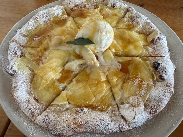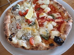 ピッツァが美味しいとお聞きして伺いました。ランチもありましたが、シェアして食べたくて【シェアサラダ】【日替わりパスタ】【マルゲリータとシラスとレモン】【アップルシナモンピッツァ】を注文。サラダは思っていたよりボリューミーで、キッシュや生ハム付きが嬉しかったです。マルゲリータ、美味しいー!シラスもレモンでさっぱりいただけ、これまた好きなお味。この日は日替わりパスタがチーズのトマトソースで、爽やかなトマトソースが良かったです。卓上のハバネロソースやオイルがいいアクセントになって、味飯も楽しめました。素敵なお正月ランチとなりました。ご馳走様でした。