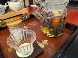 行ってみたかったお店でした。住宅地の中にひっそりあるので、どこかなどこかな…と少々ドキドキでした。玄関の戸を開けると、素敵な置物や飾り付けされた空間が。【八宝茶】と【天心爛漫セット】を頼みました。八宝茶は見た目にも美しく、優しいお茶のお味でホットさせてくれます。お菓子が4種類付いていて、ちょこちょこつまみながら何度も何度もポットのお湯を注いで楽しめます。天心は5種類の味が楽しめ、どれも美味しかったです!特製のお酢を付けるのですが、それがまた更に美味しくしてくれます。一つ一つ味わい、お茶をゆっくりいただくと2時間が経っていました‼︎素敵な時間が過ごせました。またゆっくりと伺いたいです。ご馳走様でした。