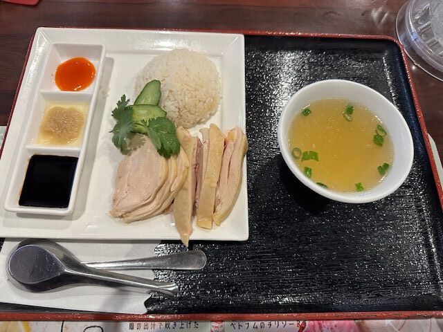 お昼に伺いました。雨だったのに店内はほぼ満席でした!QRコードで注文です。【海南鶏飯120g】【鶏のフォーM】【蒸し餃子】にしました。海南鶏飯はジャスミンライスがパラっとしていて本場のお味が楽しめました。ソースを色々付けて味変をたくさん味わえました。フォーは以前感動したように、これまたスープが美味し〜い!しっとりのお肉もたまりません。卓上の薬味でこちらも味変を楽しみました。餃子は食べやすく、パクパクいただけました。やっぱり美味しかったです。冷凍のフォーがとても気になりました。次回はこちらも購入してみたいです。ご馳走様でした。