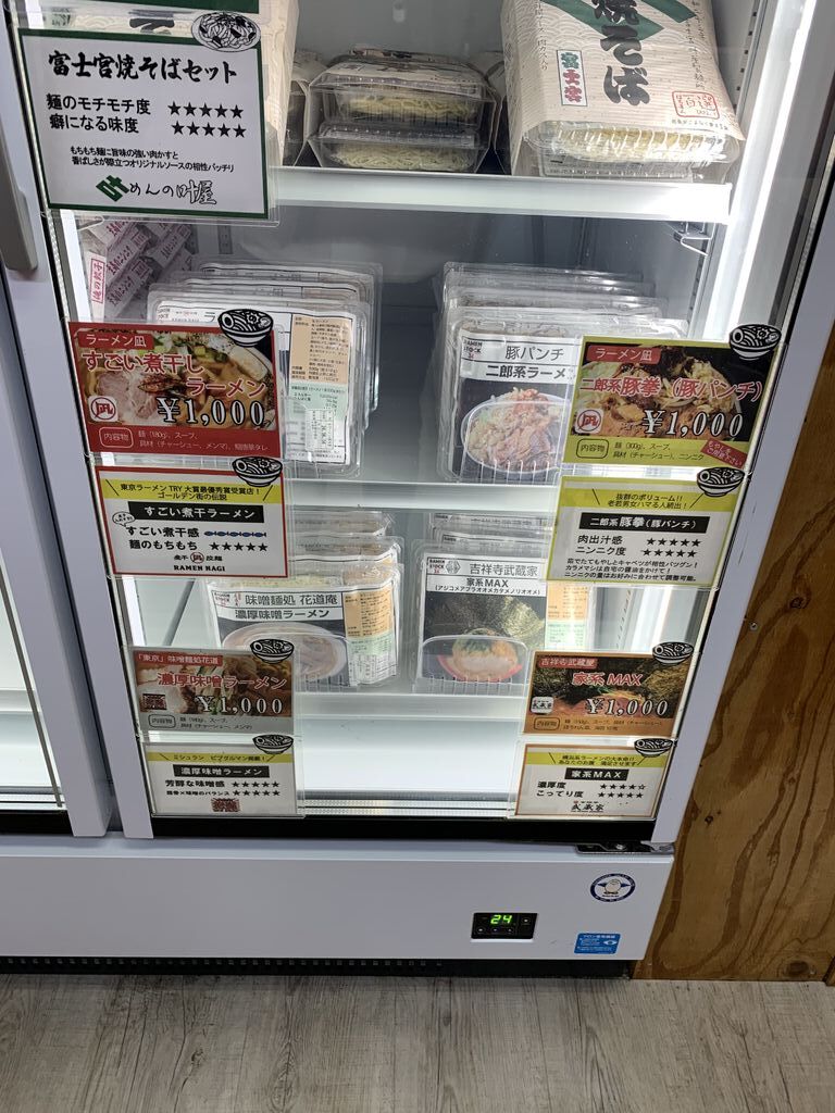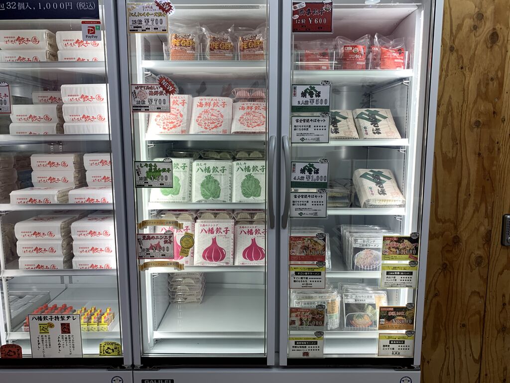 ゆいの杜から移転して清原台にできたこちらの無人販売所。気になっていて初めて伺いました。ノーマルだけでなく辛い餃子やにんにくチーズ餃子、海鮮餃子など数種類あり何を買うか悩みました。今回は鶏しそ餃子を購入。早速家に帰って焼いてみましたが、豚肉ではなく、更に紫蘇も入っているのでぱくぱく食べられました。餃子以外にも他県の有名ラーメン屋さんのラーメンも数種類ありつい購入。二郎系、煮干しなどありましたが、家系を購入。家でお店のこってりしたラーメンが食べられたらなーなんて思っていたのでそれが叶いました。(はちまん餃子 清原台店)