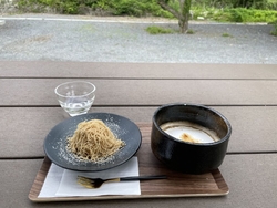 インスタを見て気になっていて、友人に連れて行ってもらいました。大谷石の蔵を、リノベーションした日本茶カフェ。食事系のメニューは、すいとんと、焼きおにぎりのお茶漬け(梅か鮭)、あとは、モンブランか抹茶などのアフォガードなど、、。ドリンクは日本茶がメイン。抹茶ラテほうじ茶ラテもありました。私はモンブランのミニサイズと、ホットのほうじ茶ラテを注文。店内に入ってすぐの場所で、メニューをオーダーして会計を済ませて、それから席に案内してもらうシステム。テラス席が空いていたので、そちらに案内してもらいました。モンブランは、細い糸状の絞りで、中は生クリームとメレンゲ。栗の味がしっかり感じられ、口の中でとろけます。ほうじ茶ラテは、抹茶茶碗で提供され、ほうじ茶の味が濃くて、まろやかなミルクの味が甘さを引き立てます。テラス席は、自然を観ながら、小鳥の囀りに癒され、本当に時間を忘れてしまう程です。隠れ家的なカフェでした。レンタサイクルも、やっているようです。