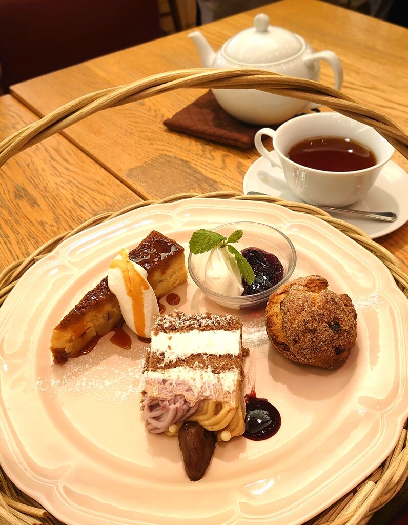 14:00~のアフタヌーンティーセットを頂きました!好きなスイーツを3品選びます!栗とむらさき芋のショートケーキ、スイートポテトプディング、いちじくキャラメルスコーンを選び、飲み物は大好きなアールグレイをオーダーしました!スコーンは香ばしいキャラメルの風味が良いです!なめらかなスイートポテトプディング!しっとり栗の風味良いシフォンケーキ!香り良いアールグレイを頂きながら、美味しいスイーツをゆっくりと頂くなんて、とても贅沢な幸せな一時でした!スコーンと栗とむらさき芋のショートケーキは季節限定です!フード、スイーツ、ドリンクメニューは期間限定の秋のメニューが勢ぞろいです!スペシャルティー、グラスパフェ等も有り、秋を十分に満喫出来ます!素敵なお茶の時間をありがとうございました!また楽しみにお伺いしたいと思います!